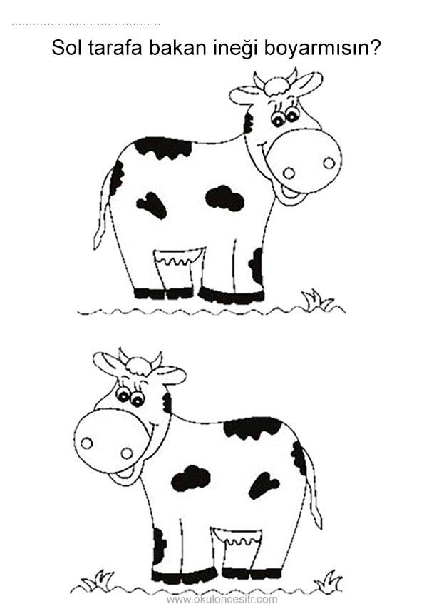 Sağ sol kavramı çalışma sayfası etkinlikleri ile inek sağ sol yön kavramları çalışmaları etkinliği örnekleri kağıdı indirme, çıktı yazdırma. Free right and left worksheets download printable.
