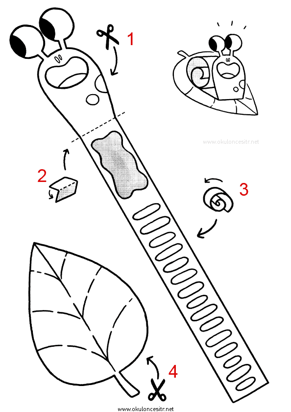 Okul öncesi anasınıfı etkinliklerinde kullanılmak üzere yaprak üzerinde gider gibi yapan üç boyutlu salyangoz yapımı etkinliği, salyangoz kalıbı indir yazdır çıktı al sitesi. Resmi yazdır diyerek salyangoz kalıbını yazdırın, rakamlarla belirtildiği gibi işlemleri gerçekleştirerek etkinliği yapabilirsiniz. Sonunda salyangozu yaprak üzerine isterseniz yapıştırabilirsiniz.