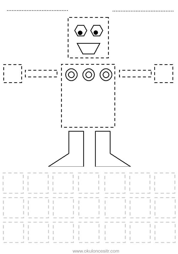 Dikdörtgen, üçgen, kare, yuvarlak, daire şekil kavramları çalışma sayfası ve robot geometrik şekiller kavramı çalışmaları etkinliği örnekleri kağıdı indirme, çıktı yazdırma. Free geometry worksheets download printable.