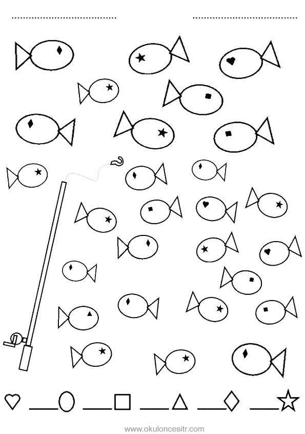 Dikdörtgen, üçgen, kare, yuvarlak, daire şekil kavramları balıklar çalışma sayfası ve geometrik şekiller kavramı çalışmaları etkinliği örnekleri kağıdı indirme, çıktı yazdırma. Free geometry worksheets download printable.