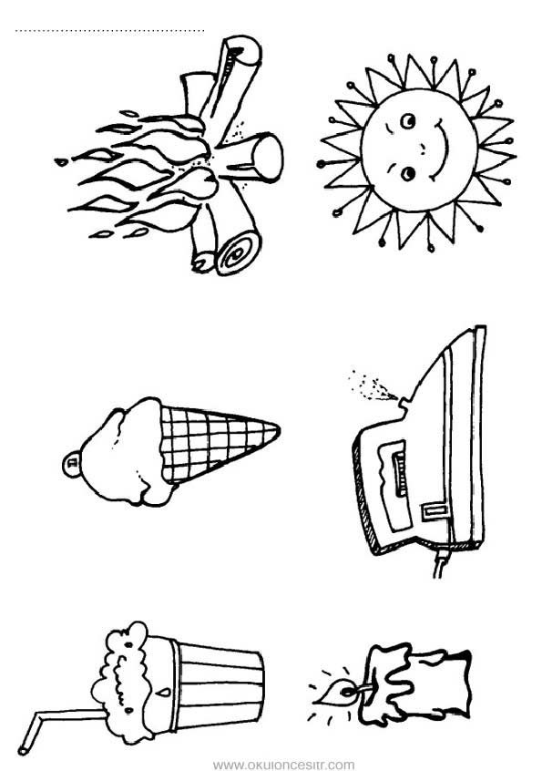 Sıcak soğuk kavramı çalışma sayfası etkinlikleri ve ateş, ütü, mum sıcak soğuk duyu kavramları çalışmaları etkinliği örnekleri kağıdı indirme, çıktı yazdırma. Free hot cold worksheets download printable.