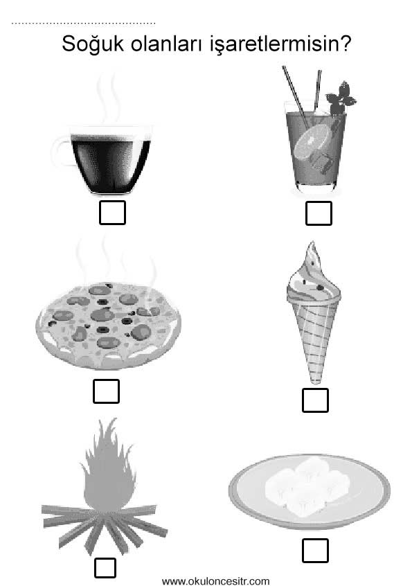 Sıcak soğuk kavramı çalışma sayfası etkinlikleri ve ateş sıcak soğuk duyu kavramları çalışmaları etkinliği örnekleri kağıdı indirme, çıktı yazdırma. Free hot cold worksheets download printable.