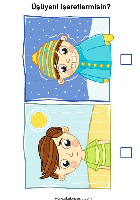 Sıcak soğuk kavramı çalışma sayfası etkinlikleri ve yaz kış mevsimler sıcak soğuk duyu kavramları çalışmaları etkinliği örnekleri kağıdı indirme, çıktı yazdırma. Free hot cold worksheets download printable.
