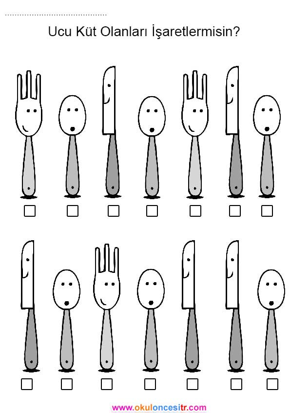 Sivri küt kavramı çalışma sayfası etkinlikleri ve çatal, kaşık, bıçak sivri küt duyu kavramları çalışmaları etkinliği örnekleri kağıdı indirme, çıktı yazdırma. Free pointed worksheets download printable.