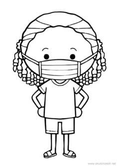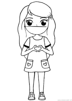 Maskeli Kız Boyama Sayfası