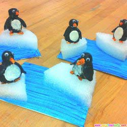 Sünger ve kağıtlardan penguen yapımı