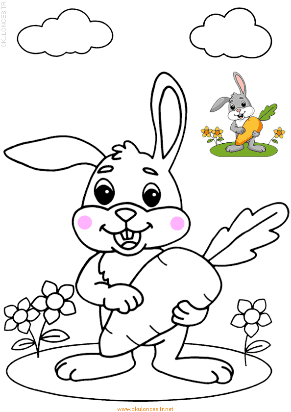 Elinde havuç tutan tavşan boyama sayfası ve sevimli tavşan boyamaları oyunu, renkli çizimi siyah beyaz kalıbı etkinlikleri boyaması, basit, zor, kolay tavşan boyama sayfaları kitabı. Tavşan nasıl çizilir, ücretsiz çıkartın ya da resimleri pdf indir, kalıp yazdır. Kindergarten, preschool kids free rabbit coloring pages download and printables.