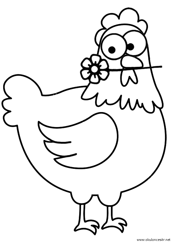 Ağzında çiçek tutan tavuk boyama sayfası ve tavuk boyamaları sayfaları, tavuk boyaması resmi oyunu, renkli, kolay, basit boyama kalıbı. Tavuk nasıl çizilir kağıdı , resimleri örnekleri, ücretsiz pdf yazdır çıkart indir. Free chicken coloring page download printable kindergarten kids.