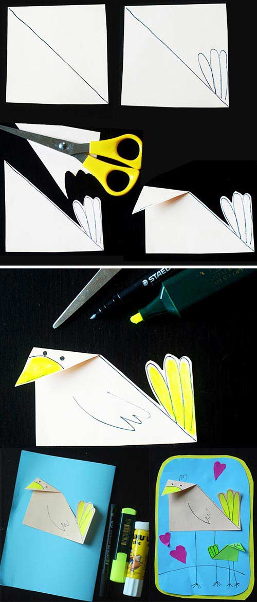 Basit olarak üç boyutlu tavuk yapımı kağıt işleri etkinlikleri çalışmaları örnekleri yapımı.