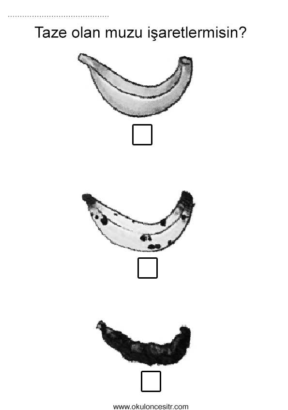 Taze bayat kavramı çalışma sayfası etkinlikleri ve çürümüş muz taze bayat duyu kavramları çalışmaları etkinliği örnekleri kağıdı indirme, çıktı yazdırma. Free fresh stale worksheets download printable.