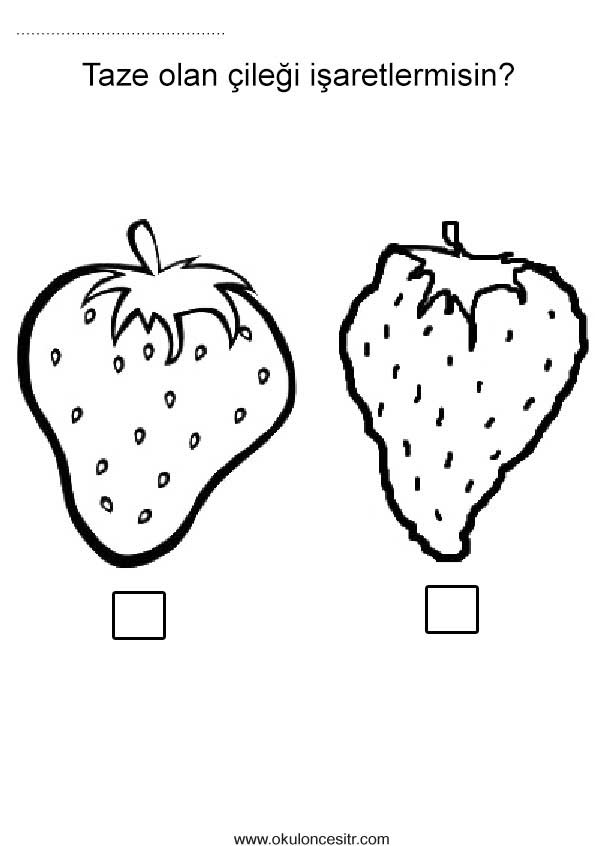 Taze bayat kavramı çalışma sayfası etkinlikleri ve çürümüş çilek taze bayat duyu kavramları çalışmaları etkinliği örnekleri kağıdı indirme, çıktı yazdırma. Free fresh stale worksheets download printable.