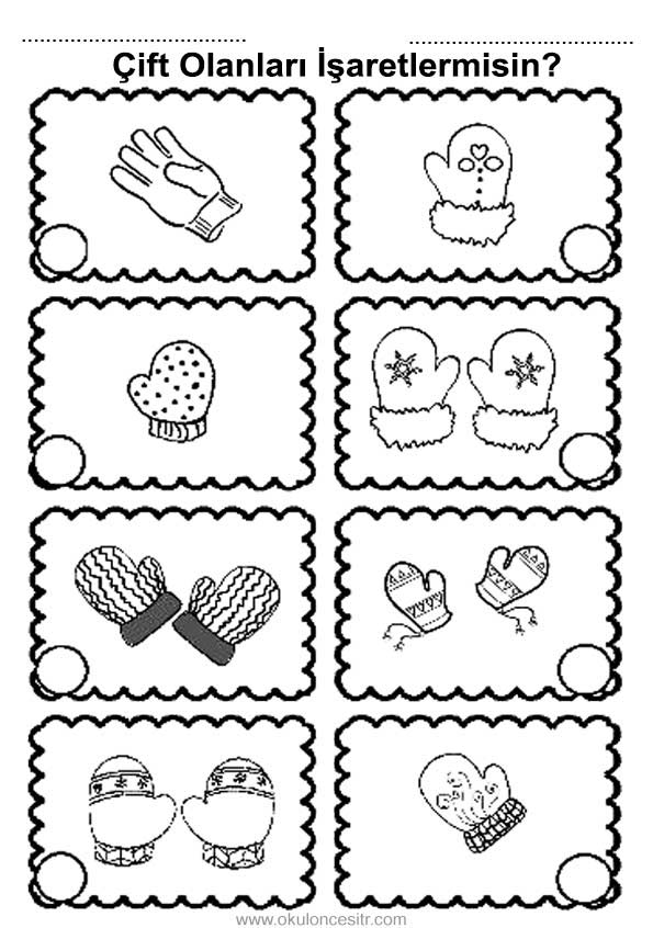 Tek çift kavramı çalışma sayfası ve kış mevsimi eldiven tek çift miktar kavramları çalışmaları oyunu, etkinliği örnekleri kağıdı indirme ve çıktı yazdırma. Free more or less worksheets download printable.