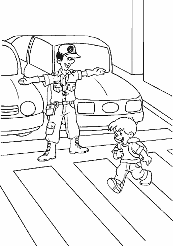 Okul öncesi anasınıfı trafik haftası etkinliklerinde kullanılmak üzere trafik polisi, yaya geçidi, yol verme boyama sayfası, kalıbı çalışmaları, örnekleri, yazdır, çıktı al indir.