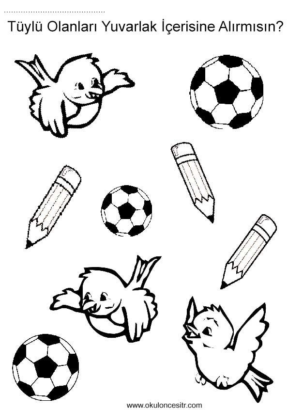 Tüylü tüysüz kavramı çalışma sayfası etkinlikleri ve kuş, futbol topu, kalem tüylü tüysüz duyu kavramları çalışmaları etkinliği örnekleri kağıdı indirme, çıktı yazdırma. Free hair hairless worksheets download printable.