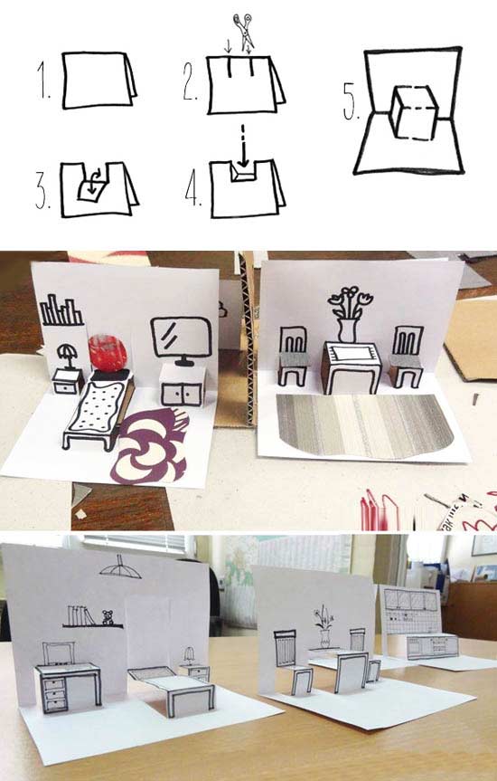 A4 kağıttan çizim yaparak üç boyutlu oda yapımı, kağıt kullanarak oda yapmak etkinlikleri çalışmaları kalıplı kağıt el işleri çalışması ve örnekleri etkinliği. Preschool activities craft site.