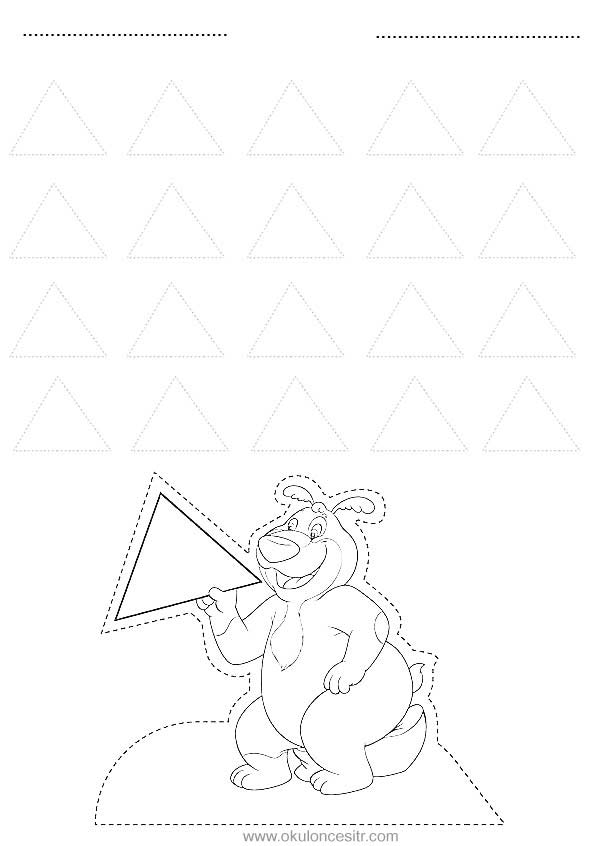 Üçgen kavramı çalışma sayfası ve ayı üçgen geometrik şekiller kavramı çalışmaları etkinliği oyunu örnekleri kağıdı indirme, çıktı yazdırma. Free triangle worksheets download printable.