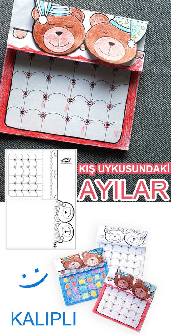 Kış uykusunda olan ayı yapımı, okul öncesi ana sınıfı kış uykusuna yatan ayılar etkinlikleri el işleri çalışması ve örnekleri kağıttan kartondan basit kolay etkinliği çalışmaları. Preschool free bear coloring pages activities craft site.