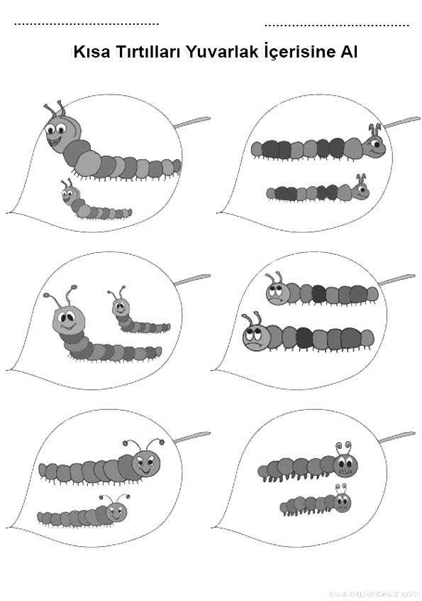 Uzun kısa kavramı çalışma sayfası etkinlikleri ve tırtıl uzun kısa boyut kavramları çalışmaları oyunu örnekleri kağıdı indirme ve çıktı al yazdırma. Free long short worksheets download printable.