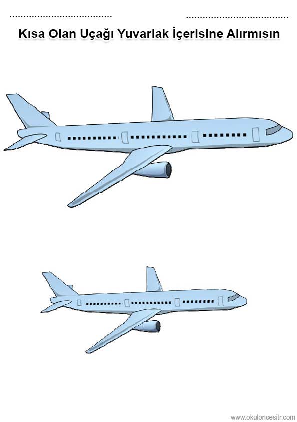 Uçaklardan uzun kısa kavramı çalışma sayfası etkinlikleri ve uzun kısa renkli boyut kavramları çalışmaları oyunu örnekleri kağıdı indirme ve çıktı al yazdırma. Free long short worksheets download printable.