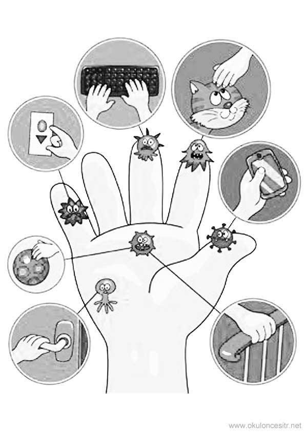 Virüsün bulaşma ihtimali olan olayların gerçekleşmesine daire resimli bilgilendirme sayfası, mikrop ve temizlik konusu. Çıktı alıp duvara asabilirsiniz.
