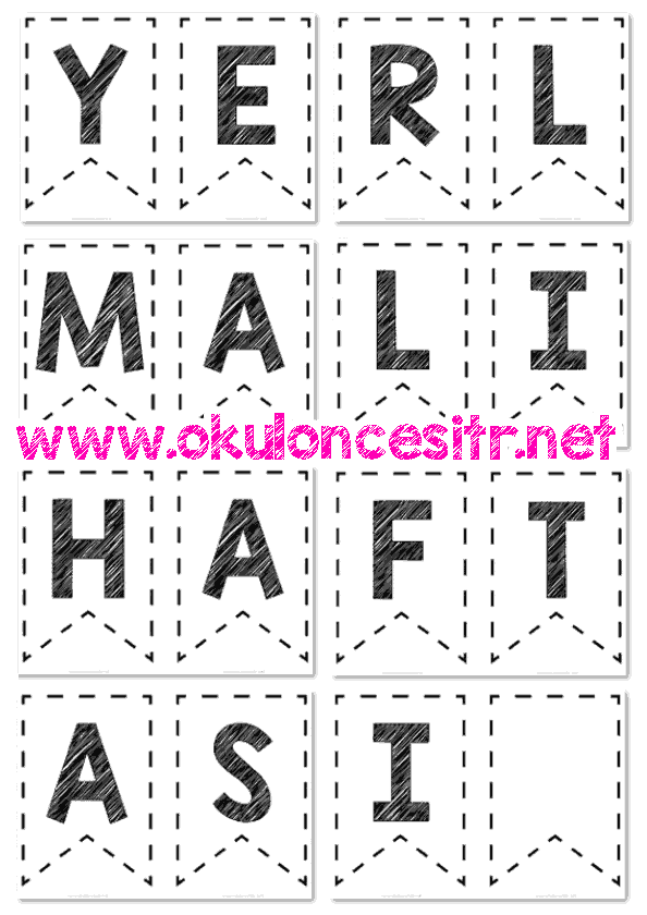 Okul öncesi, anasınıfı ve ilkokul yerli malı haftası panosu için yerli malı haftası yazısı harflerine aşağıdaki resimlerden ulaşabilirsiniz. Bu konuda yer alan harfler her sayfada 2 tane olacak şekilde tasarlanmıştır. Harflerin alt kısmında yazdır butonlarından istediğiniz harfleri yazdırabilirsiniz.