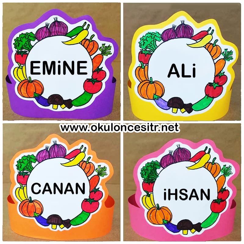 12 Aralık – 18 Aralık yerli malı haftası okul öncesi, anasınıfı, ilkokul etkinliklerinde kullanılmak üzere yerli malı tacı etkinliğini bu sayfada bulabilirsiniz. Örnek resimde göründüğü gibi renkli kartondan taç kalıbını kenarlarından kesip oluşturun. Sonrasında a4 kağıdına meyve ve sebzeleri içeren kalıbı boyayarak kenarlarını kesin. Renkli taca bu kalıbı yapıştırın.